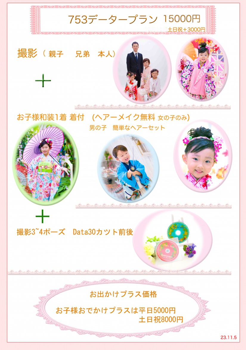 お支払いは撮影当日現金でお願いします